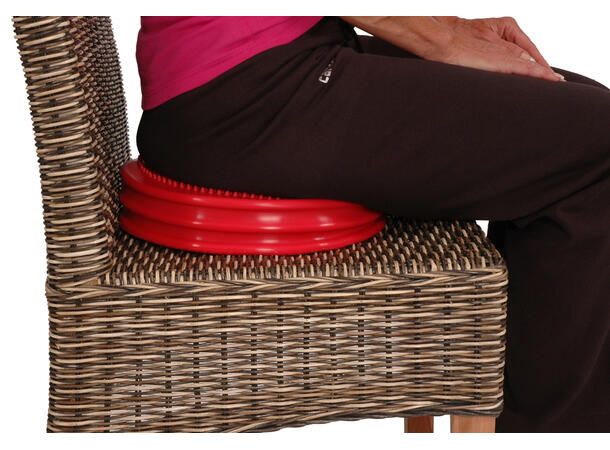 En luftfylld kudde för aktiv och dynamisk sittning som passar alla. Kudden har en slät och en sida med stimulinabbar. Levereras med luftpump. Diameter 32 cm höjd ca 7 cm. Max bruarvikt 200 kg. Tillverkad av PVC.